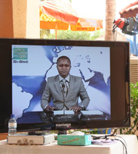 Le programme de la journée était varié. Il y avait de l’humour, du sport, du cinéma des entretiens, de la musique et de l’information. En effet, il y a eu un journal du Festival durant la journée. Du point de vue du matériel, c’est Manivelle production, une société locale qui a assuré le travail. Le plateau technique comprend plusieurs caméras, une régie image et une régie son. CFI a fait venir depuis Paris, une station satellite pour émettre en direct le signal sur ses studios parisien, puis le signal est redistribué vers toutes les télévisions partenaires. Pour Boris, cette expérience est une première puisque sept télévisions se mettent ensemble pour partager une seule et même programmation. « Au-delà du rapport Nord Sud, pour moi, le rapport Sud-Sud est fantastique et il est à encourager ».