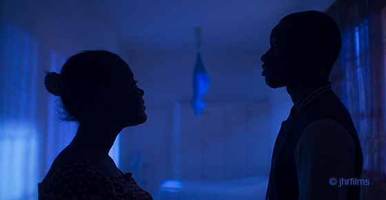 Enfin, et c’est peut-être, de toutes les réussites de ce film, la plus magistrale : la mise en image particulièrement exigeante, remarquable, de Mamadou Dia. L’homme est directeur photo, il faudrait être aveugle pour ne pas le voir. La beauté est partout dans ses plans, mais pas seulement : le travail du cadre qui propose des compositions singulières aux perspectives puissantes, le rythme qui ne craint pas de prendre son temps et rend sensible les enjeux de chaque accélération, la force évocatrice du hors champ, les amorces qui appuient la physicalité, la frontalité des rapports dans les champs et contre-champs, les décadrages suggérant sans façon l’intériorité des personnages, les mouvements de caméra discrets et maniés avec une juste parcimonie sans hésiter pour autant à passer à l’épaule pour servir le propos, l’usage singulier de la contre-plongée… et la lumière ! Tantôt crue, blanche, directe, tantôt poétique, se parant de teintes de bleu profond, de rouges, de verts toujours amenées avec subtilité par le choix du décor, évitant l’artifice imposé pour plaquer une émotion mal construite. Des clair-obscurs sublimes, taisant autant qu’ils délivrent la vérité des visages qu’ils enveloppent… Un sans-faute.