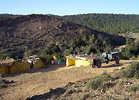 La maison jaune n’est pas un film sur la mort, mais un film sur l’après mort. Qui est le mort ? C’est Belkacem, un gendarme. A la suite d’un accident, il perd la vie. Son père quitte le village a bord de sa Lambretta, un tricycle à moteur pour aller chercher le corps de son fils.