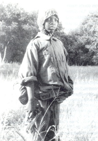 "Source d’histoire", est pour ma part plus explicite dans son contenu et efficace sur son intention de porter débat. D’une problématique similaire aux orphelins de rue ou aux enfants enlevés à leurs familles, cette histoire nous conte une pratique qui se généralise dans tous les conflits et implique les enfants dans les forces armées. Un groupe d’enfants engagés volontairement ou malgré eux rencontrent quelques jeunes adolescents d’un petit village de brousse qui vivent leur innocente jeunesse. Les uns prennent des drogues et sont confrontés à la destruction et à la mort violente des leurs pendant que d’autres ne se soucient qu’à des jeux de séduction empreints de poésie. L’intelligence du film se démontrera au dénouement du film par la promesse de cet enfant sergent à ses parents décédés, de tout faire pour éviter que d’autres enfants de son âge soient confrontés à sa propre situation.