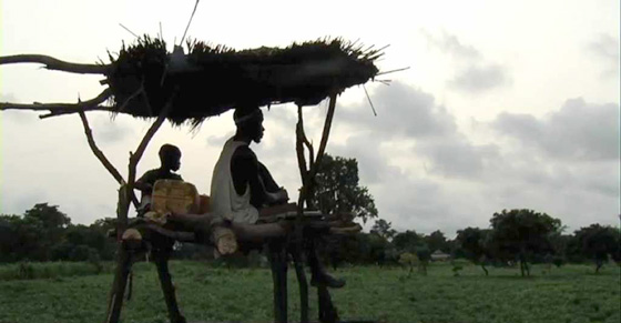Et c’est ainsi que nous suivons, tout au long de Jikoo, les pensées qui agitent Souadou tandis qu’il se déplace des champs au village, à travers sa belle nature confisquée. Il parle, il compte, il fait des projets, tel Perrette : « si je gagne 50000frs, avec la chaux j’achèterai des semences d’arachide, et je pourrai acheter le bois de charpente pour finir la maison, mais l’argent de la chaux ne suffit pas , si nous trouvions des grillages nous aurions de beaux champs, si on me prêtait 2 millions sur 5 ans je pourrais rembourser...il vaut mieux planter du mil que du riz, mais ils doivent nous aider... » tandis qu’il va prendre son tour de garde sur le mirador, que les enfants chassent les oiseaux et parfois les font rôtir et que, malgré les guetteurs, les phacochères continuent leur œuvre destructrice. « On travaille pour rien , aucune loi ne dit que les animaux doivent vivre aux dépens des populations » « Nous voulons vivre de la terre, c’est notre culture », comme un disque rayé, encore et toujours et le chef du village tristement bredouille : « J’ai appris que le parc n’était pas là pour nous ».
