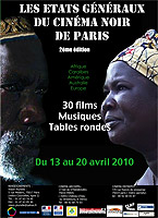 Les Etats Généraux du cinéma noir de Paris, du 13 au 20 avril 2010, sont programmés dans deux salles qu’on aime bien : l’Entrepôt dans le XIVème et l’Archipel, dans le Xème près de Strasbourg Saint Denis. Deux lieux qui nous consoleront de la fermeture du cinéma Images d’ailleurs, où nous pouvions voir toutes les perles du cinéma africain. Sanvi Panou, - béret Black Panther toujours vissé sur la tête -, continue ailleurs le combat, avec l’association « vision plurielle », qui développe les liens associatifs autour du cinéma africain.