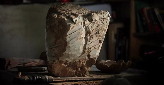 Il passe le reste de son temps dans son atelier pour la réalisation d’un buste en pierre. Pas à pas, pendant l’évolution de l’oeuvre, différentes personnes passent dans l’atelier …