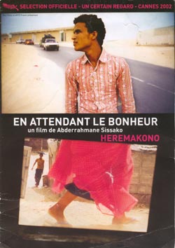 " En attendant le bonheur " est un film contemplatif. Peu de dialogue, mais des scènes de la vie quotidienne à Nouadhibou, petite ville plantée entre désert et océan. Le temps semble s’y être arrêté. Abdallah, le personnage principal est à l’image de cette ville. Tiraillé entre deux horizons infinis : le désert et la mer. La quête d’ailleurs ne peut être que la quintessence de ses rêves. A travers la subjectivité de son regard, on découvre les autres personnages tous aussi égarés. On ne sait pas d’où vient Abdallah, ni où il part. Il est en transit dans la ville de sa mère. Le film reflète cette transition. Le temps semble suspendu. Chacun attend un hypothétique bonheur.