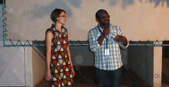 18h30 au maquis du CNA, quartier du Neerwaya. Le taxi fait un grand détour dans la poussière qui rougeoie, embouteillages...et ces motos trop nombreuses qui lui enlèvent des clients ! Je suis venue voir la projection du film de Jean-Pierre Bekolo, « Quartier Mozart », en rattrapage... Petit salut à équipe du CNA : Kadidja dont j’avais partagé la tournée autour de Sikasso il y a 8 ans, et Julien rencontré en décembre à Dakar. Voilà que l’Institut Goethe a programmé l’avant première du « Président », même jour même heure, le dernier film du réalisateur. Encore bravo à l’organisation ! Les gens du CNA s’arrachent les cheveux, mais assurent. La discussion habituelle avec le public se fera avant la projection, et J.P.B. sautera dans une voiture pour présenter « le Président » à l’institut Allemand.