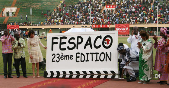 Et clap ! Les projecteurs ont été allumés tout à l’heure sur la 23ème édition du Festival Panafricain du Cinéma et de la Télévision de Ouagadougou (FESPACO). Le clap d’envoi de cette édition dont le thème est « Cinéma africain et politiques publiques en Afrique », a été donné par le Premier ministre burkinabè, Beyon Luc-Adolphe Tiao. Il était entouré pour la circonstance de la première dame du Faso, Mme Chantal Compaoré, marraine du festival, de la première dame du Gabon dont le pays est retenu invité d’honneur de cette édition.