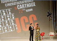 Après le discours du ministre, Dora Bouchoucha présente le programme de la semaine. Hormis de nombreuses sélections toutes passionnantes, le festival rend hommage cette année à trois grands disparus : Ousmane Sembène qui reçut le Tanit d’or en 1966 pour la première édition des JCC pour son film La Noire de…, Youssef Chahine honoré en 1970 par un Tanit d’Or pour l’ensemble de son œuvre et président du jury en 1990 et enfin le mythique producteur tunisien Ahmed Bahaeddine Attia. Guitare à la main, Ismaël Lô, le chanteur sénégalais précède le jury de la compétition officielle, dont il fait partie. L’écrivain algérien Yasmina Khadra en président modeste et souriant, présente ses collègues : Sandra Den Hamer, productrice hollandaise, l’acteur égyptien Ezzat El Alayli, la productrice et réalisatrice nigérienne Rahmatou Keïta, le réalisateur poète tunisien Nouri Bouzid, Ismaël Lô déjà nommé et l’actrice française Emmanuelle Béart. Le temps est compté, une chanteuse vient mettre un terme aux salamalecs et disparaît promptement.