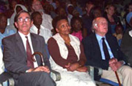 Samedi 14 février, 19h 30mn, Jean Rouch aux bras de son épouse arrive à l’entrée du Théâtre de Plein air du Centre Culturel Franco Nigérien - CCFN de Niamey : scènes émouvantes de retrouvailles. La cérémonie d’ouverture de la Rétrospective s’est voulue vraiment sobre. Et pour cause ! Les organisateurs savent que les cinéphiles préfèrent les images au discours. Le Directeur du CCFN M. Laurent Clavel a rappelé les circonstances qui ont permis d’initier la rencontre. S.E.M. Denis Vène, Ambassadeur de France au Niger, a insisté sur la nécessité de montrer aux populations nigériennes leurs images. Représentant le ministre de la culture, des sports et des cinquièmes jeux de la francophonie, M Barmini, le Secrétaire général du ministère a rendu hommage aux pionniers du cinéma nigérien et souhaité vivement que le septième art nigérien retrouve ses lettres de noblesses
