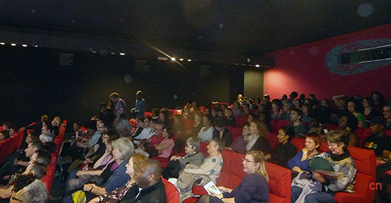 Ils sont venus nombreux mardi soir au Méliès à Montreuil, pour la première projection de Morbayassa, le dernier film de Cheick Fantamady Camara. A tel point qu’il a été décidé, alors qu’une partie des spectateurs s’était déjà installée, de changer de salle pour une plus grande afin de pouvoir accueillir tout le monde. Les comédiens Tella Kpomahou, le montreuillois Alex Ogou, Brigitte Masure, François Cherbonnel … et l’équipe technique sont venus faire la queue pour découvrir leur film.