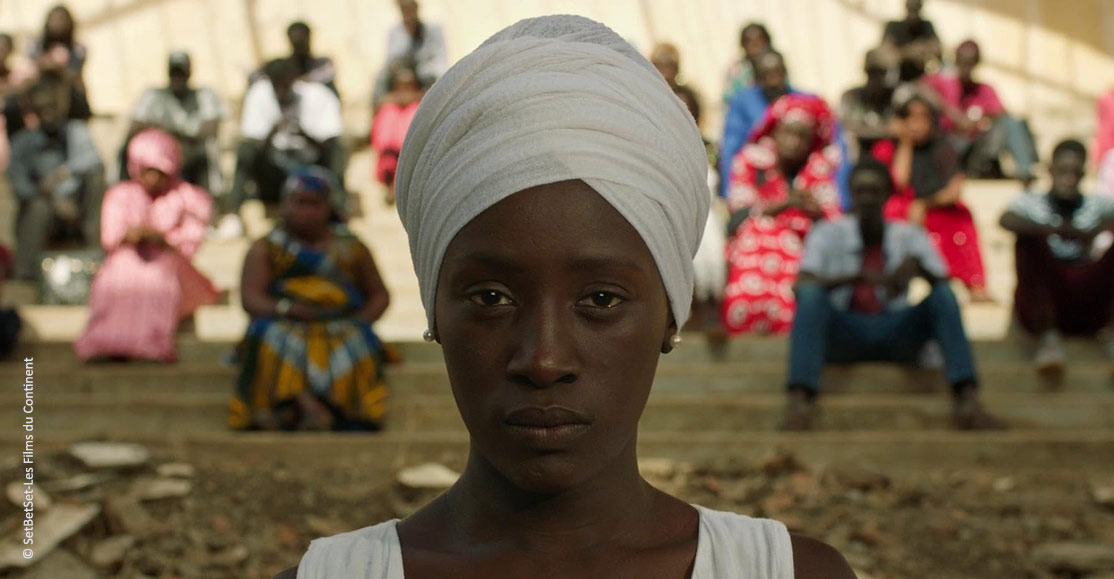 Autour de ces questions rendues actuelles par la vague mondiale qui a porté les victimes à témoigner, le réalisateur sénégalais, qui nous a habitué à de beaux portraits de femmes, tisse un récit fleuve et mélodramatique, au sens propre du temps, un drame accompagné de musique. Magnifiquement éclairés et filmés par le sénégalais Amath Niane, qui signe une belle image, dans une harmonie de couleurs traditionnelles, les protagonistes du film sont régulièrement entourés d’un chœur d’hommes et de femmes qui chantent la vérité de la sagesse traditionnelle face aux situations qui se posent à eux. De même, un narrateur, à la fois espiègle et sage, comme le coryphée du théâtre grec antique, commente l’action et tisse un lien de sagesse avec le spectateur. Ce dispositif revient à plusieurs reprises et finit par devenir la signature du réalisateur. Au chant, on retrouve les frères Guissé, qui ancrent les mélodies chantées dans une profondeur traditionnelle ici.